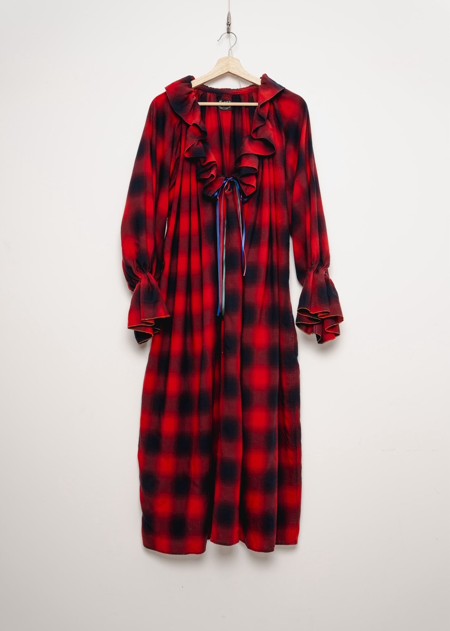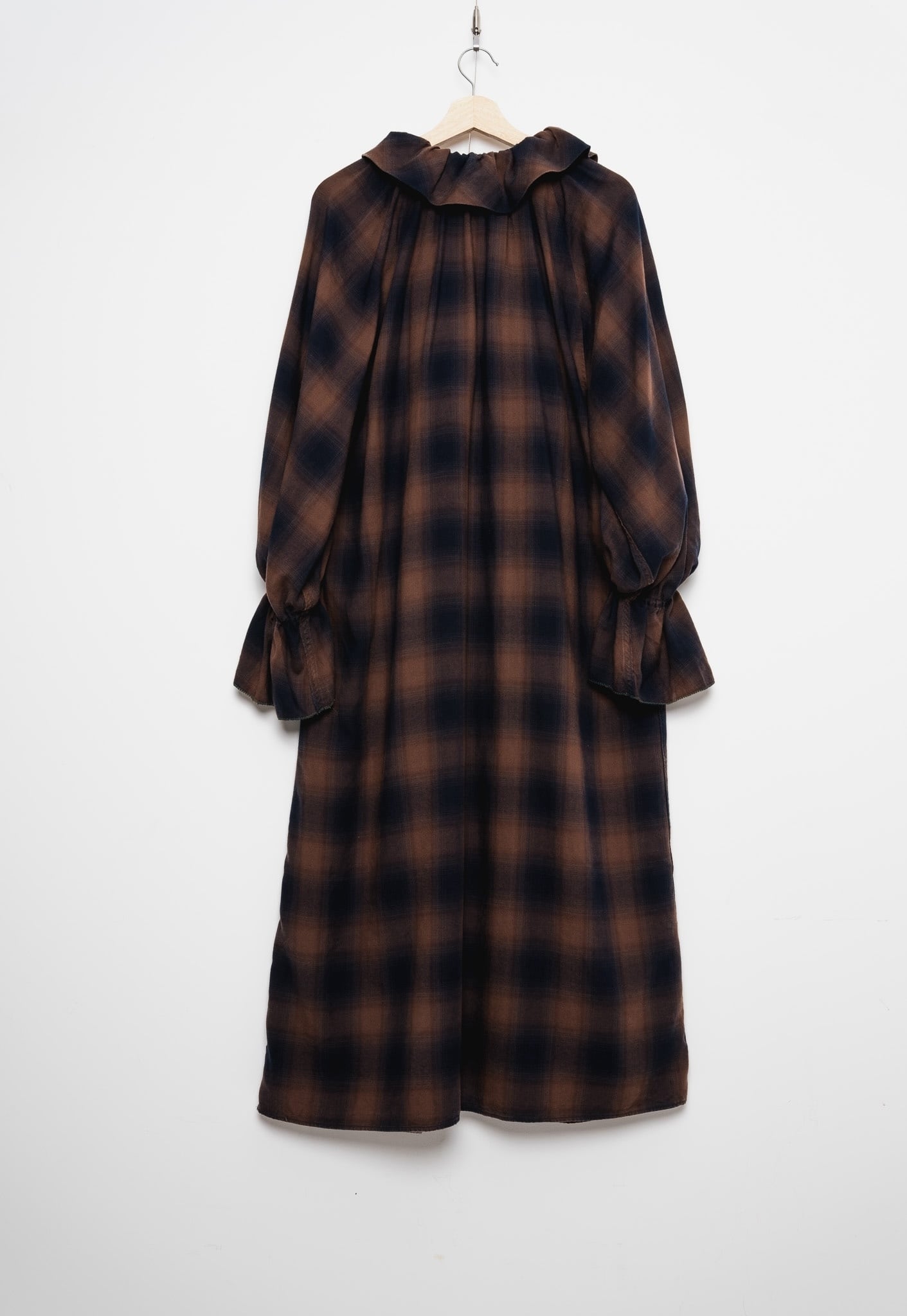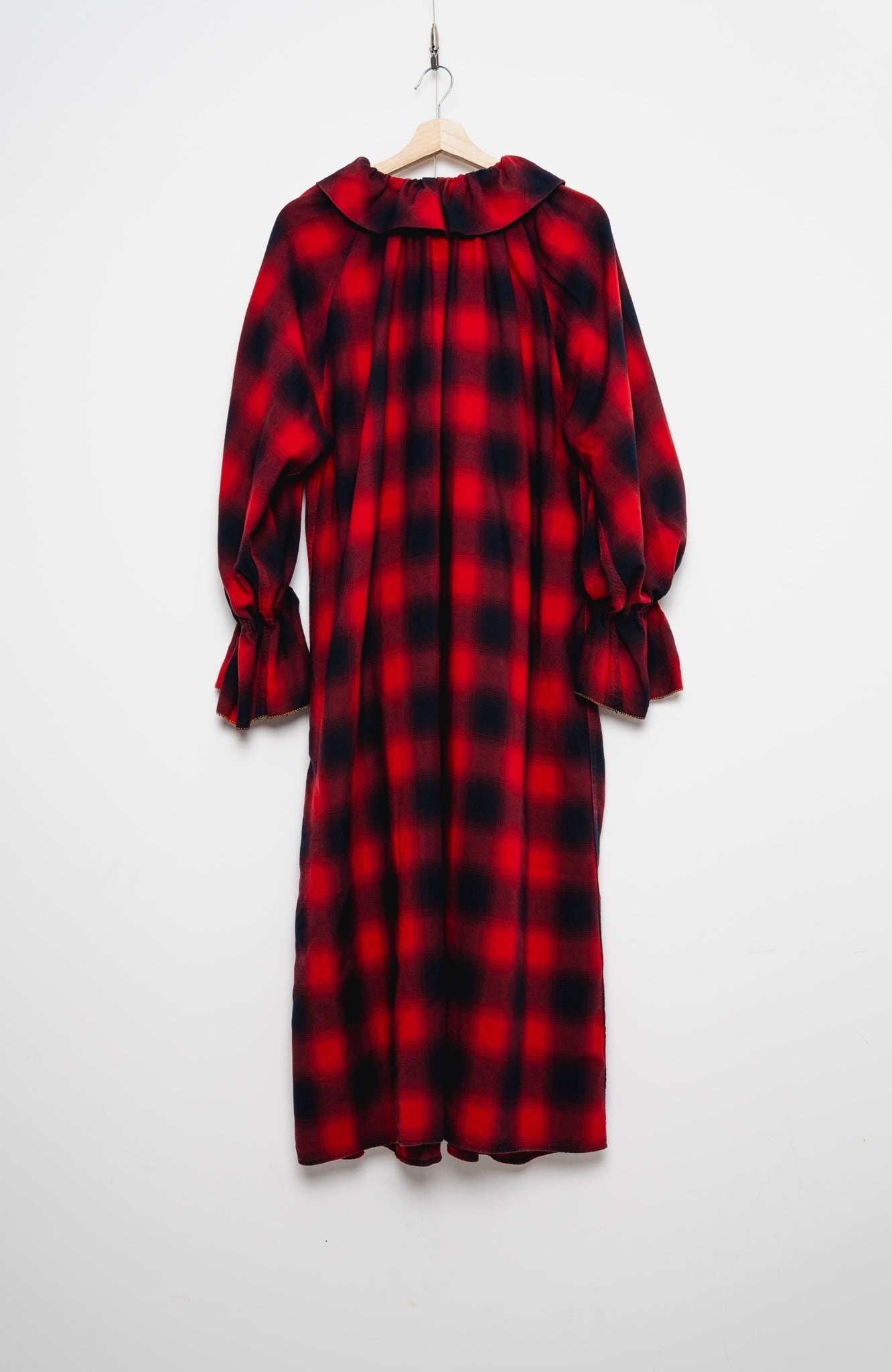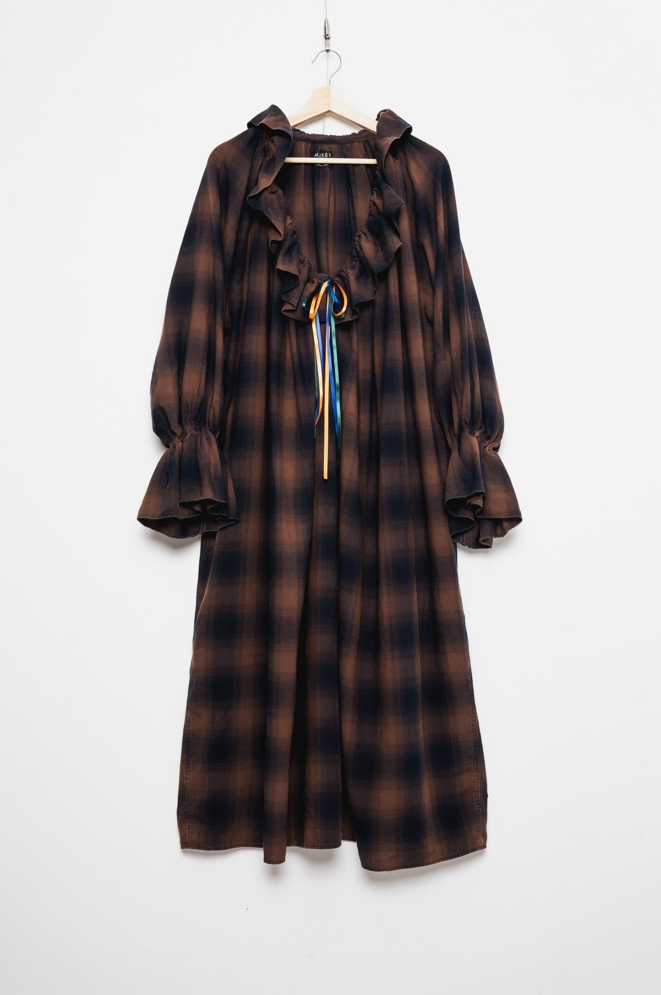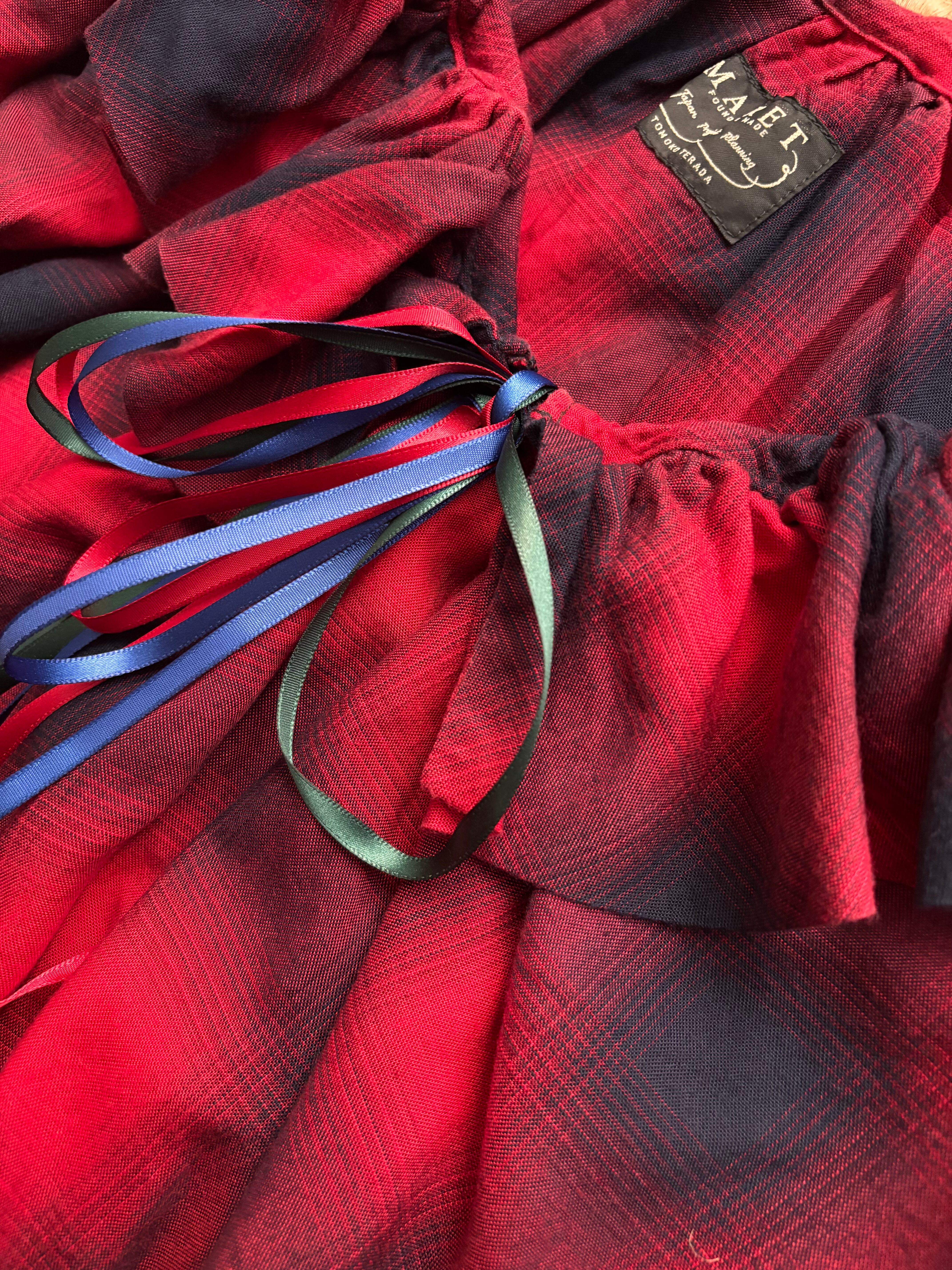 ビンテージオヤジが大好きなオンブレーチェックを女の子が可愛く着ちゃえるワンピース。テンセルの落ち感と襟周りをしぼることで、表情豊かに着こなせます。色んなカラーのリボンがポイントです!