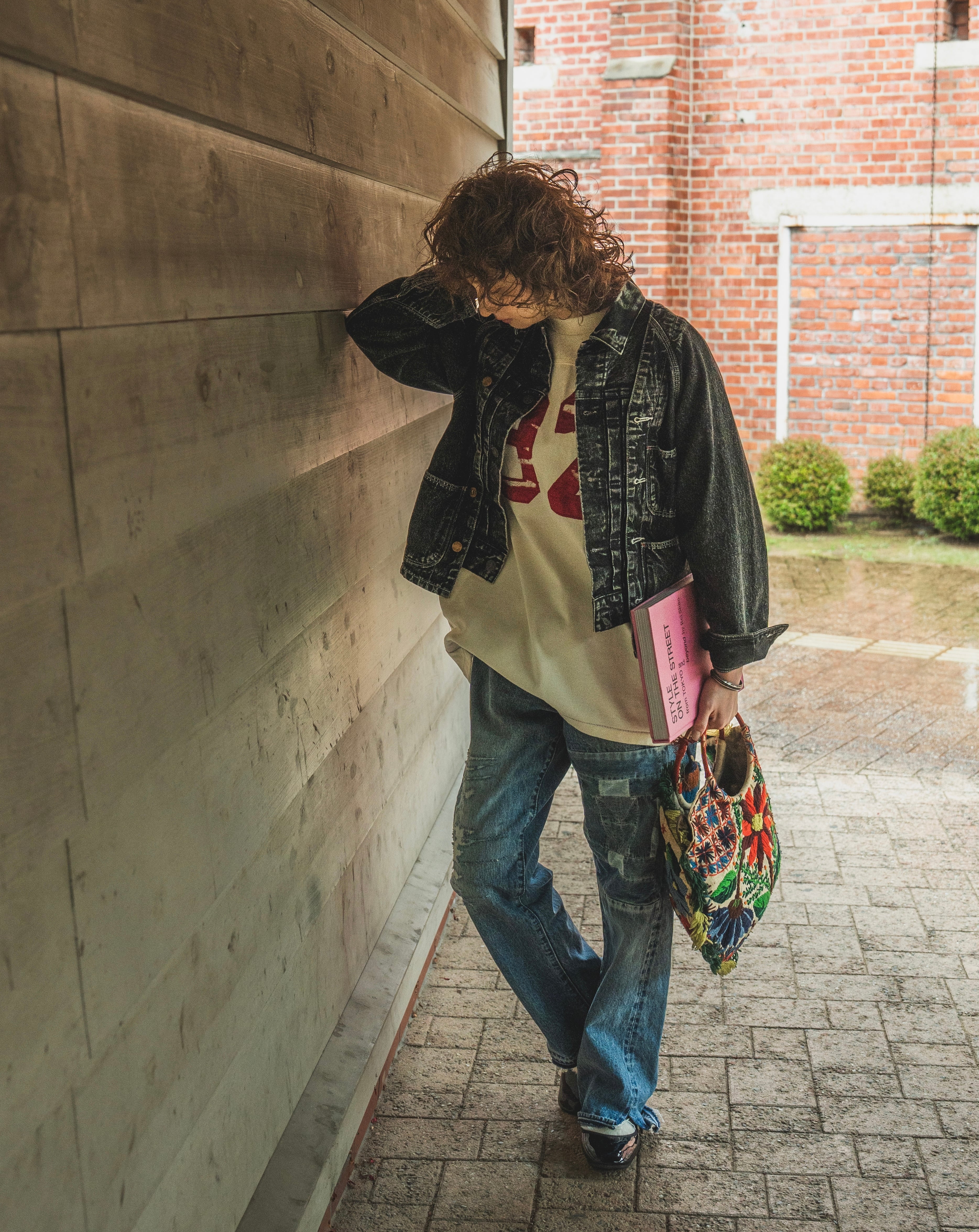 しっかりとしたオンスのジージャン部分に対してレイヤーされている見頃とはライトオンスブラックデニム。動きやすいのがなんとも嬉しいポイントです。