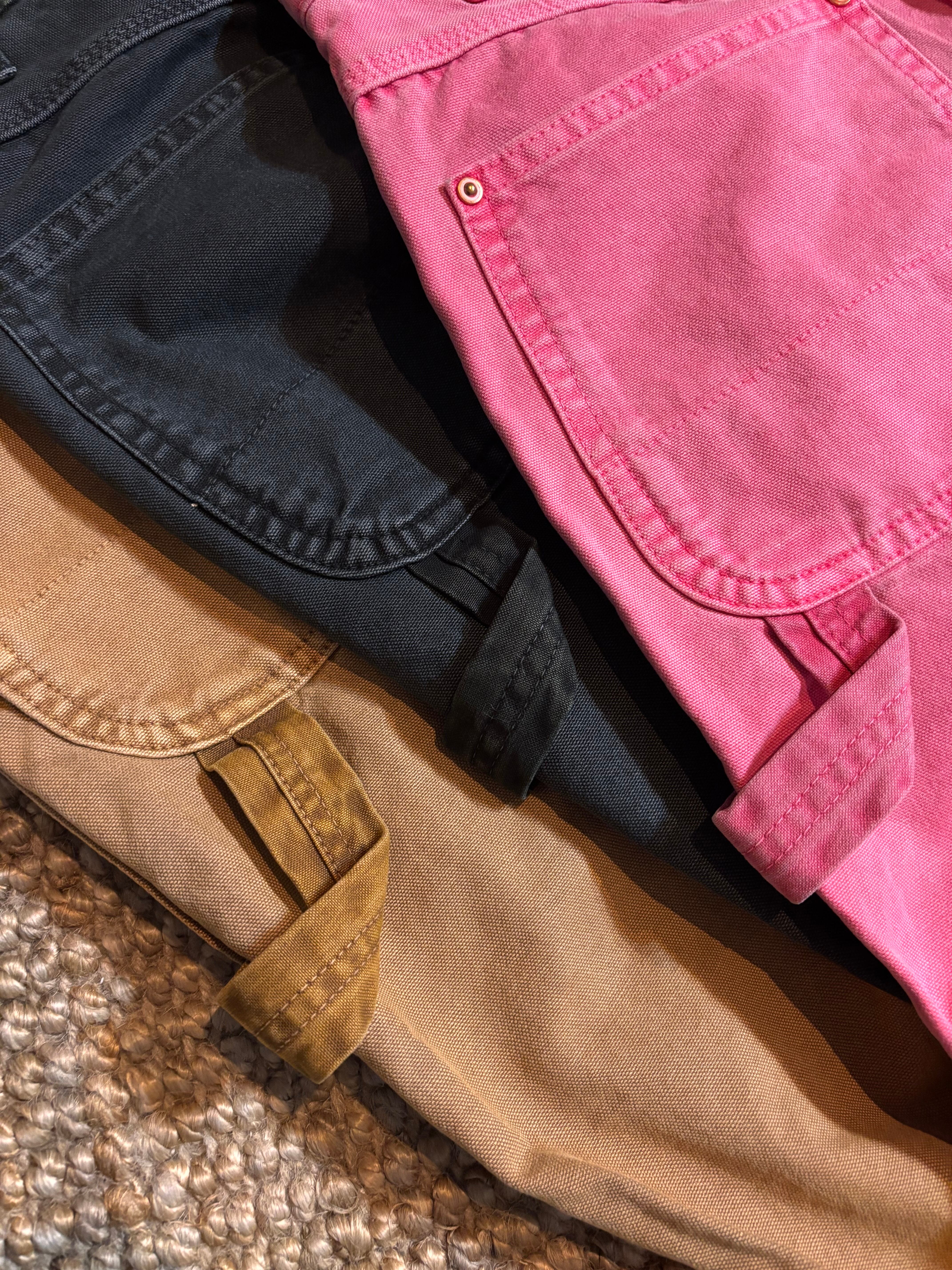ハードな印象のダックのワークペインターパンツ。オーガニックコットンの柔らかいダックを使用して見た目とは反して着やすく。ピグメント加工でハードながら上品な仕上がりになっています。裾切りっぱなしのラフ感がかっこいいです。