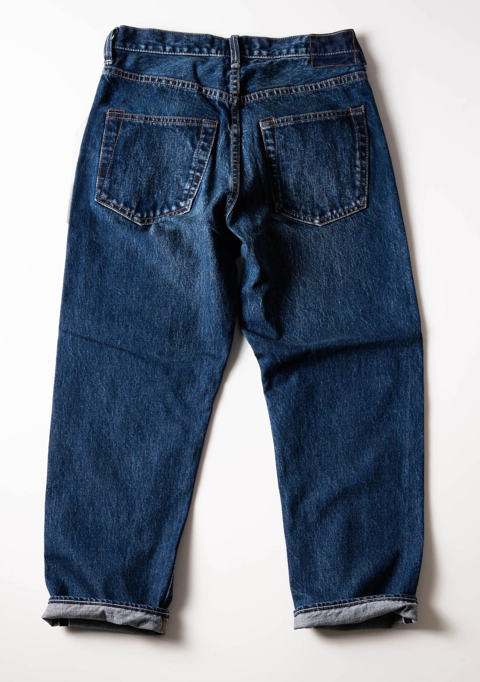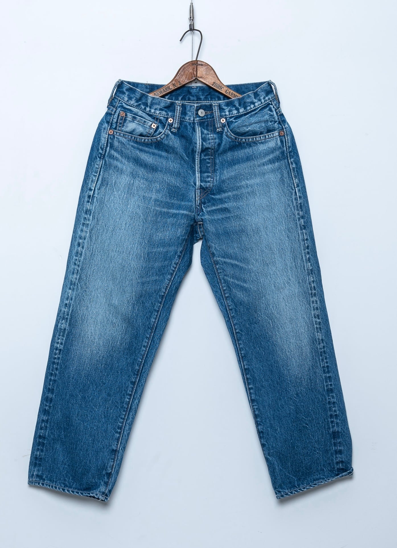 岡山産のオーガニックのセルビッチデニムを使用。重すぎないけれど肉感を拾わないオンスを選んでいます。ヴィンテージリーバイス501の47モデルを元にしています。女性でも履けるセルビッチ使いのド定番のジーンズ。全体に緩めのシルエットでカッコよさと女らしさを両立できるデニムパンツ。今回新色ビンテージブルーが登場です。